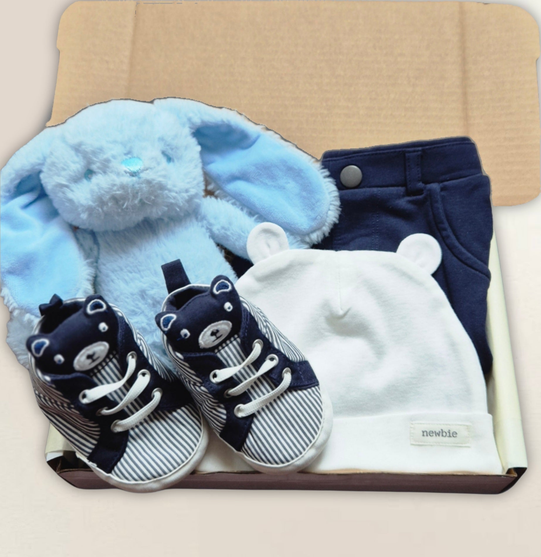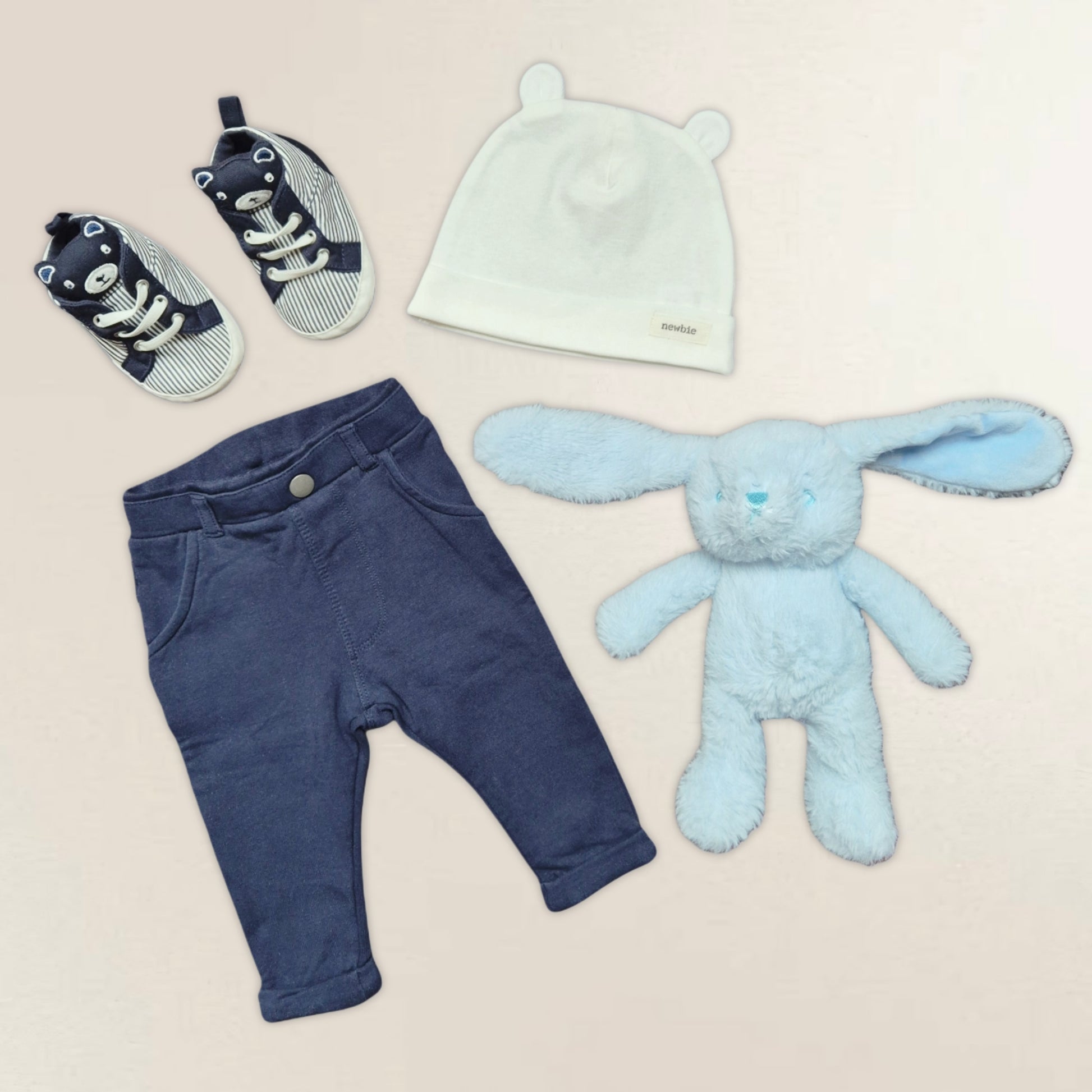 Detta underbara set innehåller bekväma och stiliga byxor, vilket gör dem till ett utmärkt val för varje tillfälle. Setet inkluderar även söta tygskor och mössa från Newbie.