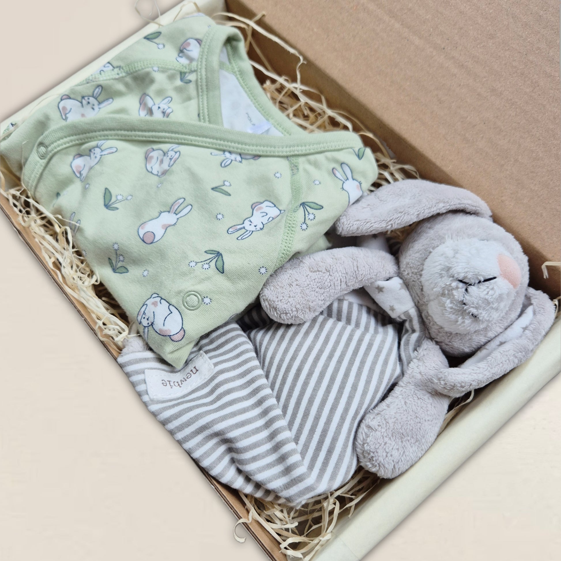 Sött paket med kanintema. Perfekt första gåva till en liten!