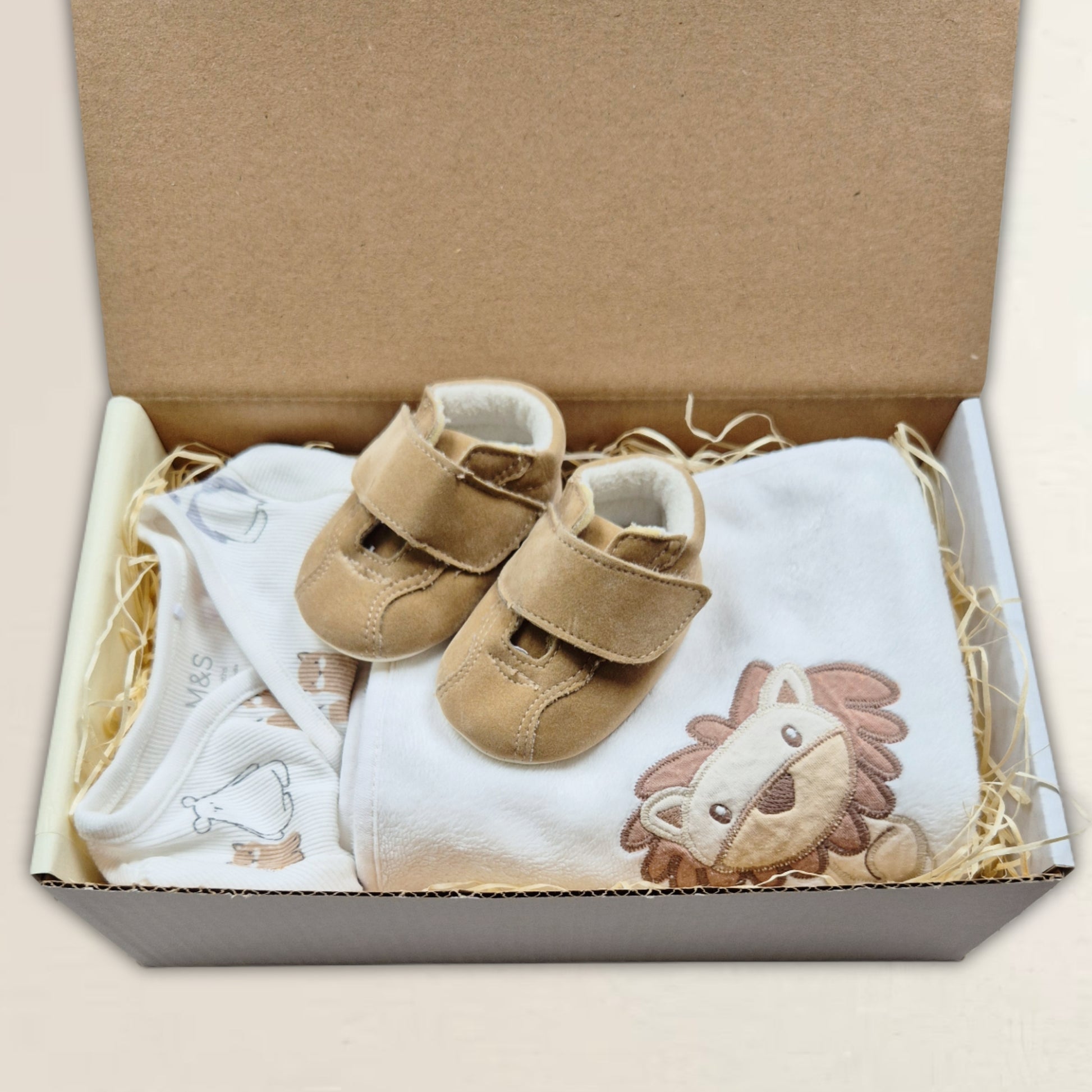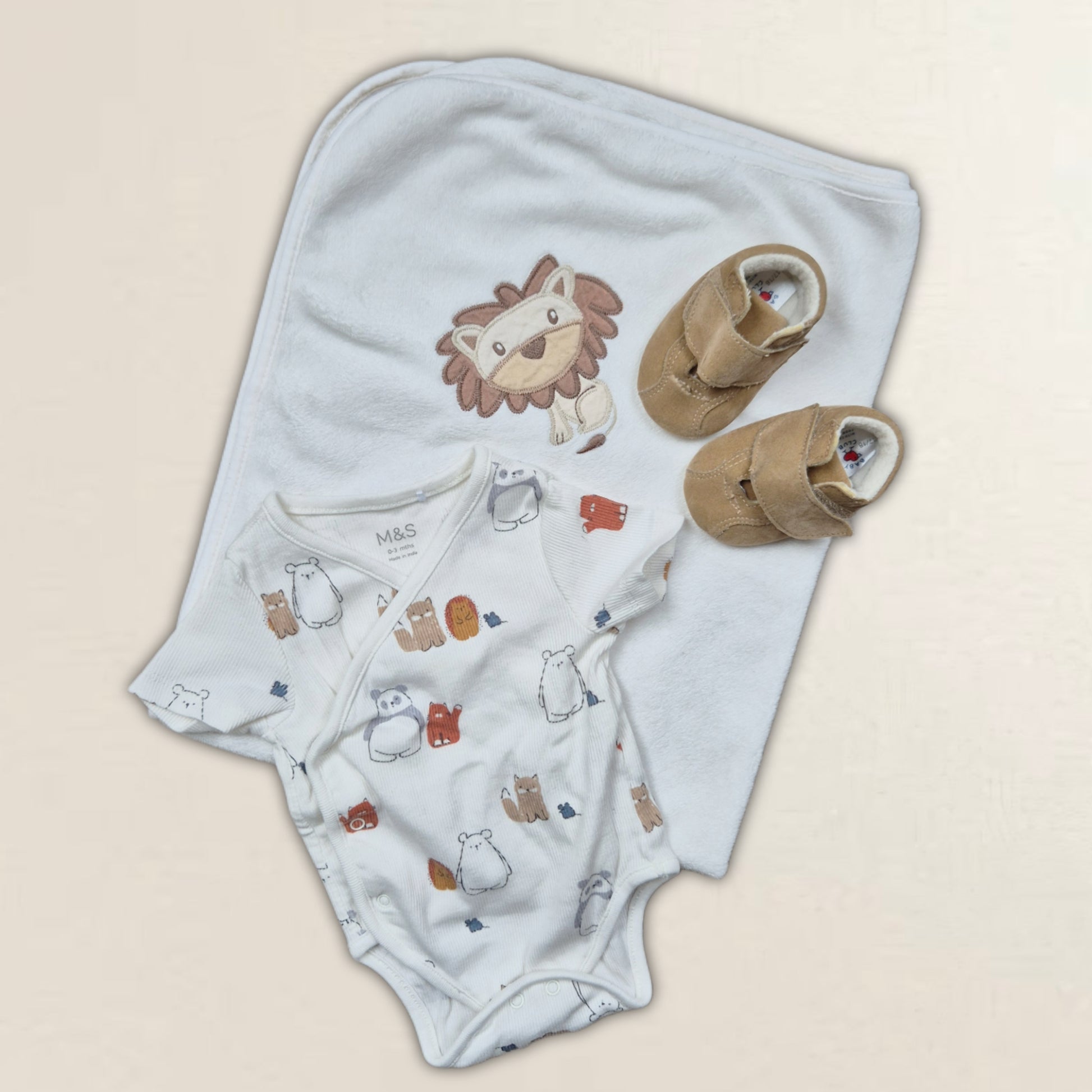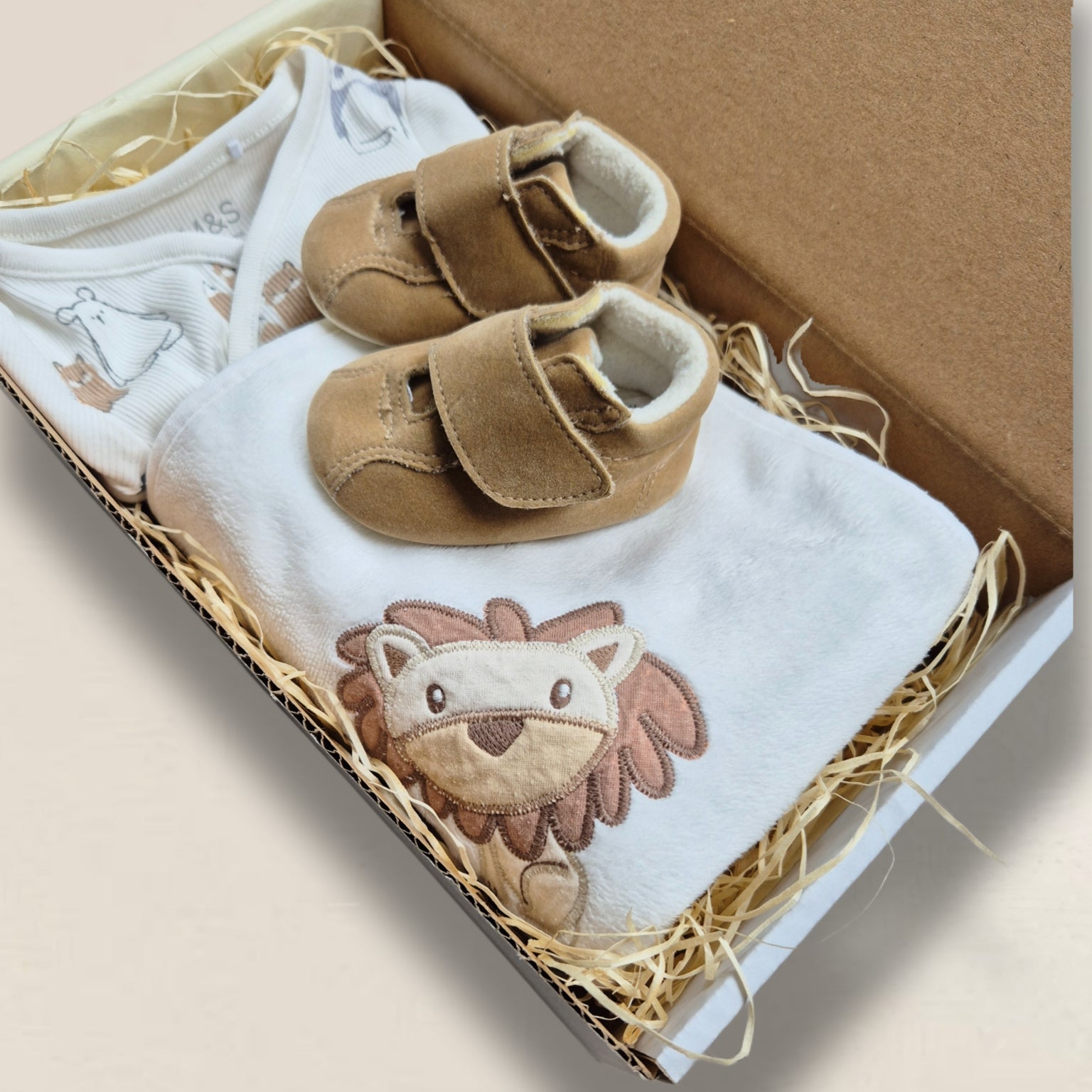Gulligt set i vitt och beige. Perfekt till den nyfödda!