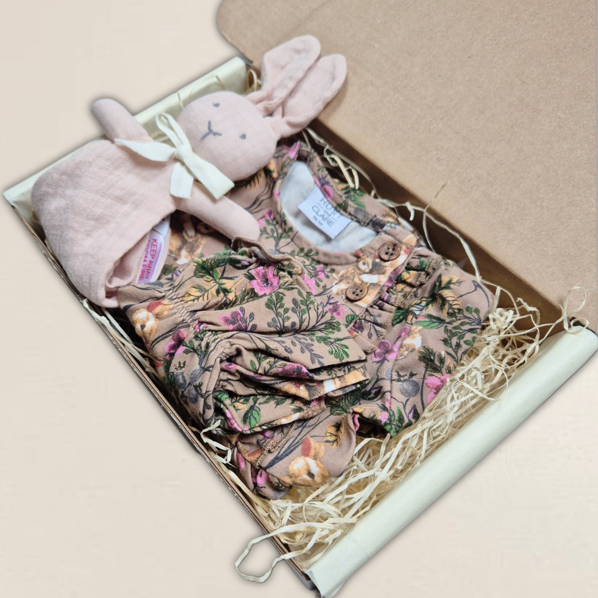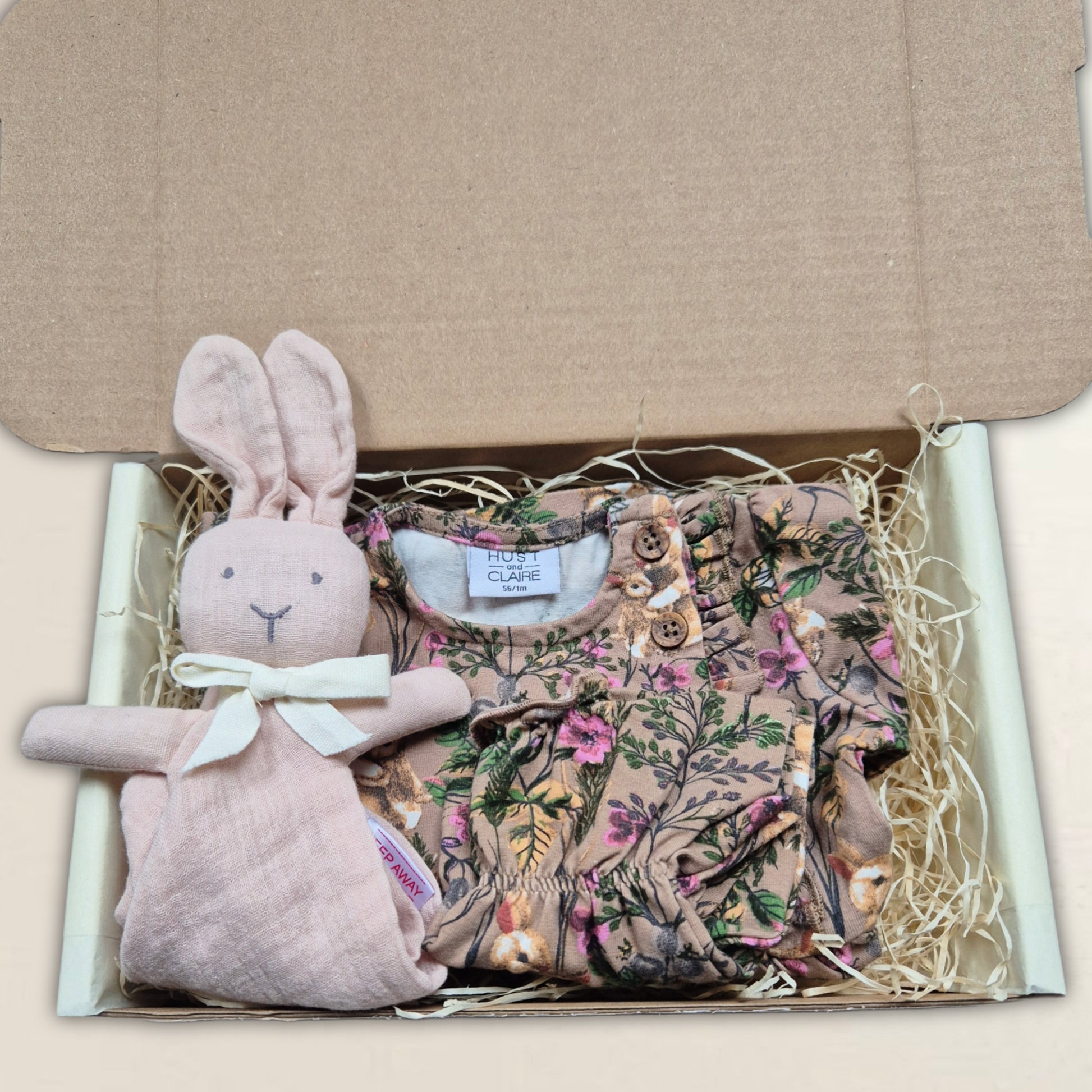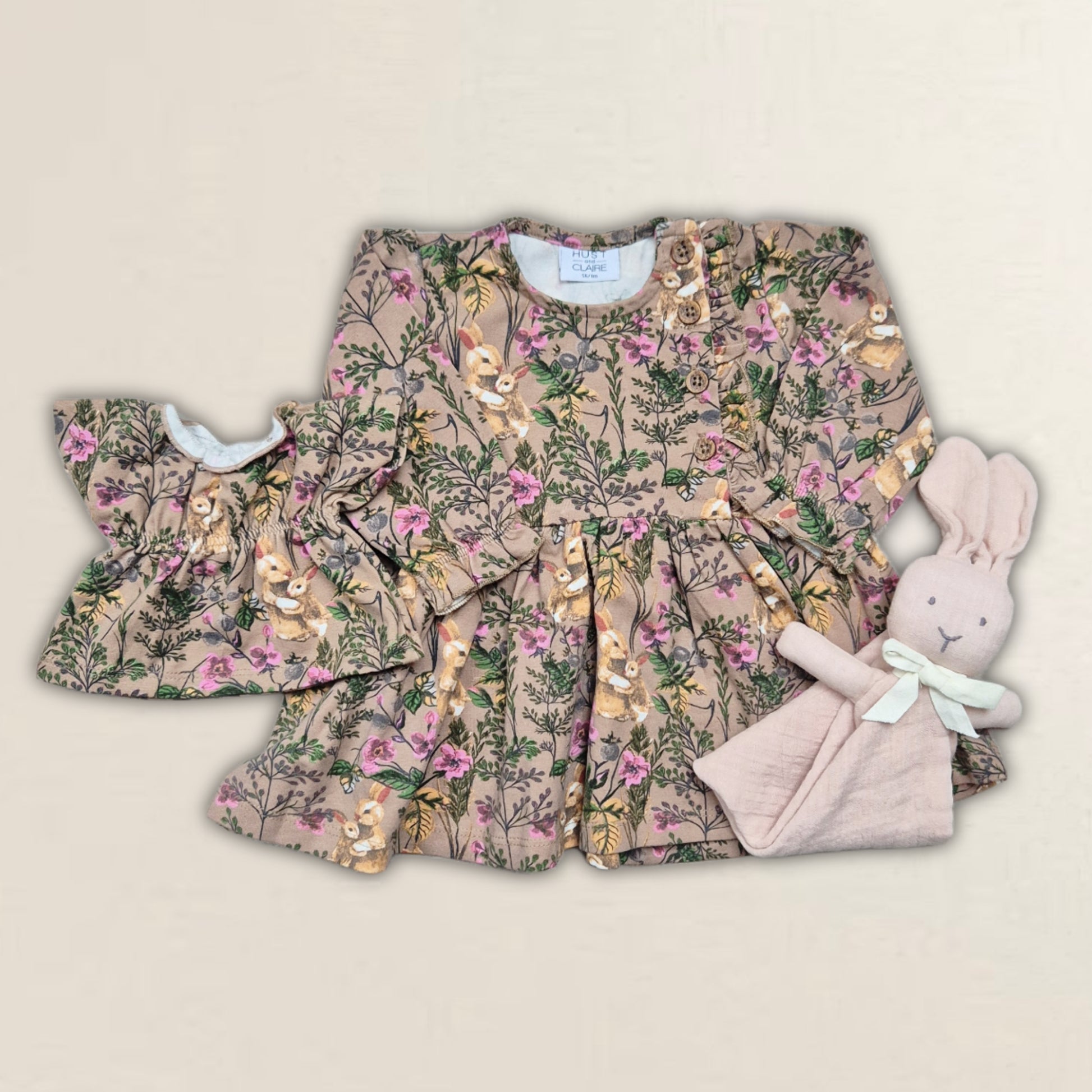 Supersöt klänning med tillhörande dockklänning. Kommer ihop med en rosa snuttis-kanin.